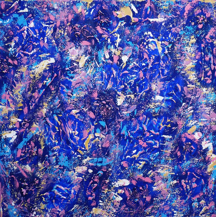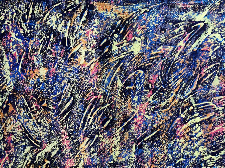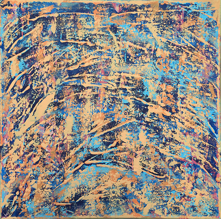 In my home island of Madeira one is never far from water, whether this is the sea, natural springs, small rivers, waterfalls, and the famous ‘levadas’ – narrow, fresh water irrigation canals that run through dense forest, often high up in the mountains. The greenery surrounding these canals reflects on the surface of the water and creates ever-changing, semi-abstract shapes and colours. The physical and visual movement of this water has inspired much of my work, in particular the ongoing ‘Retina Series’ of abstract paintings. One of my main visual interests is the relationship between colours, and in the Retina paintings I explore both this phenomenon and what paint as a medium can do.